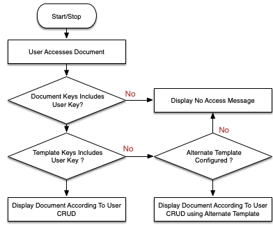 Access keys work on a model where the Account, Template and Document all have a 'key'. Access is granted to the Template or Document based on a match with the Account key. The Account key has a set of CRUD (Create/Read/Update/Delete) rights which determine the actions that can be taken on the document. The Account, Template and certain components have the capacity to create Keys on a related document via the 'AttachKeys' array.